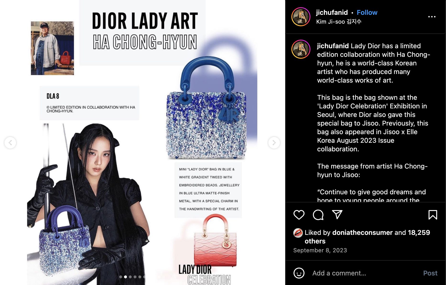 This could have questioned the authenticity of the initiative, but Dior managed to achieve a somewhat symbiotic effect by making it multidimensional. Through this the brand unintentionally fostered an organic, touching exchange between Ha Chong-Hyun, one of the artists participating in Dior Lady Art #8, and brand ambassador Jisoo of BLACKPINK