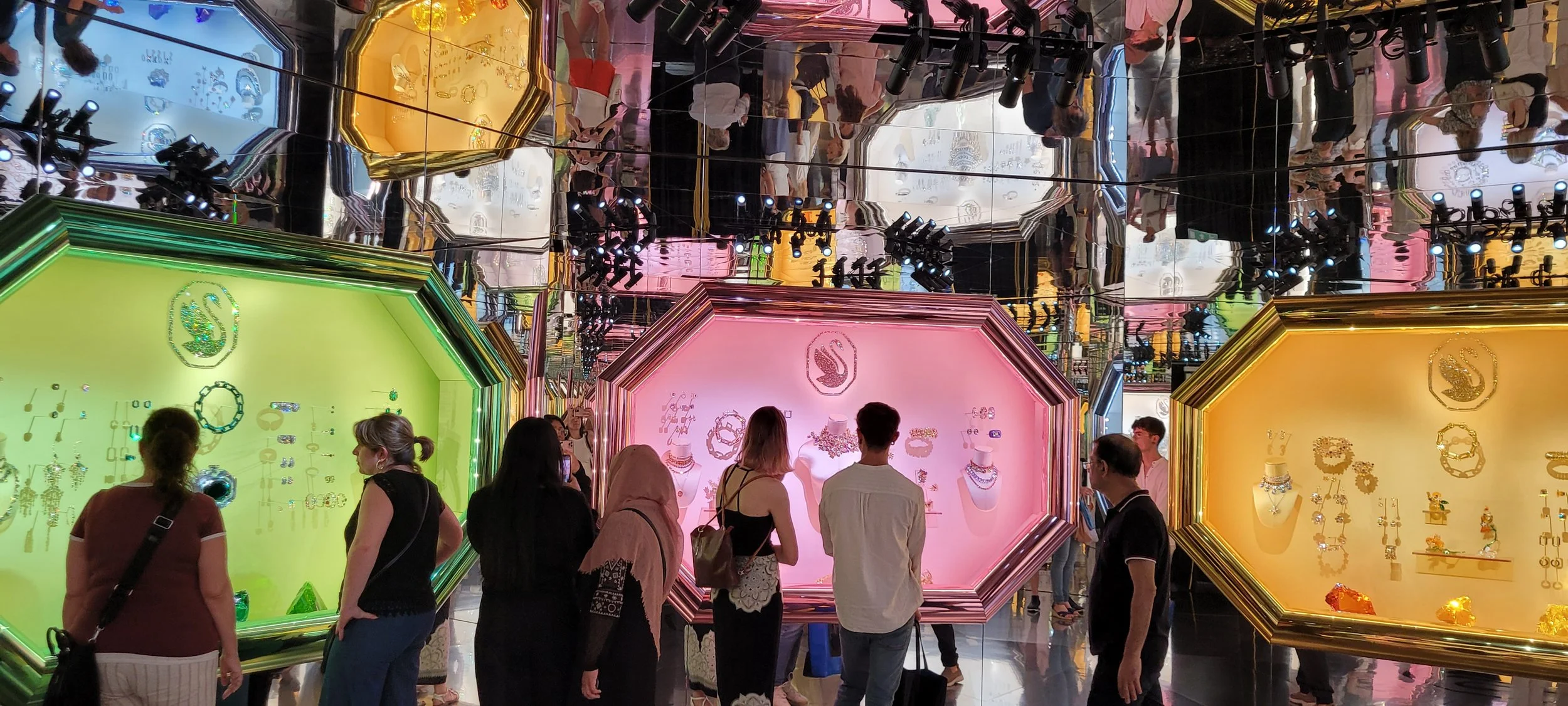 Entrance to the Time Chamber, the firat part of the exhibition showcasing the incredibly recognizable Swarovski color-blocking design