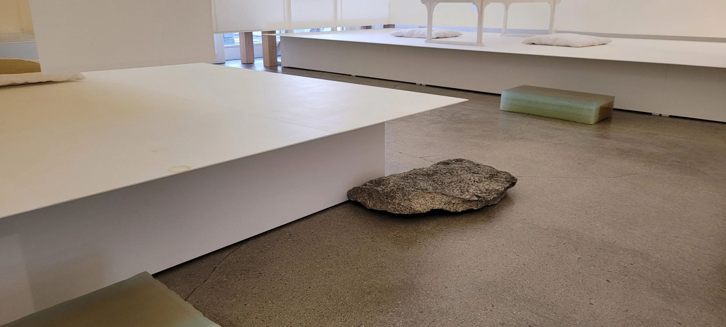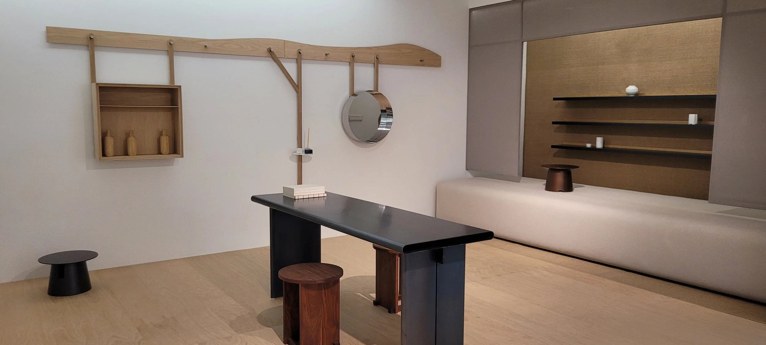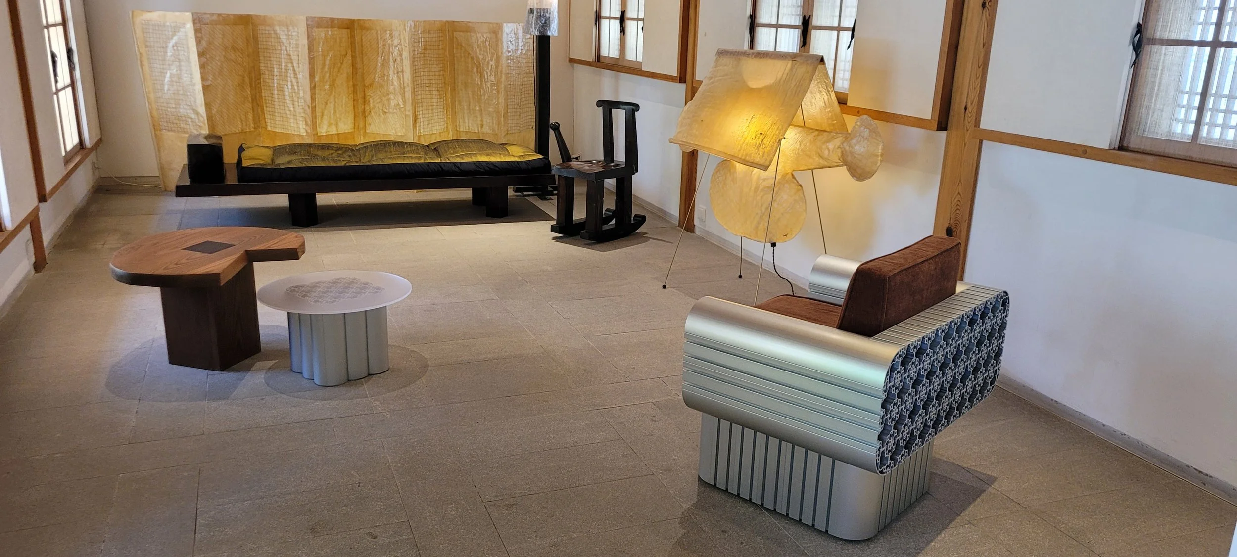 Furniture designed by Minjae Kim (wooden, in the back) and Oneseo Choi (aluminum forms)