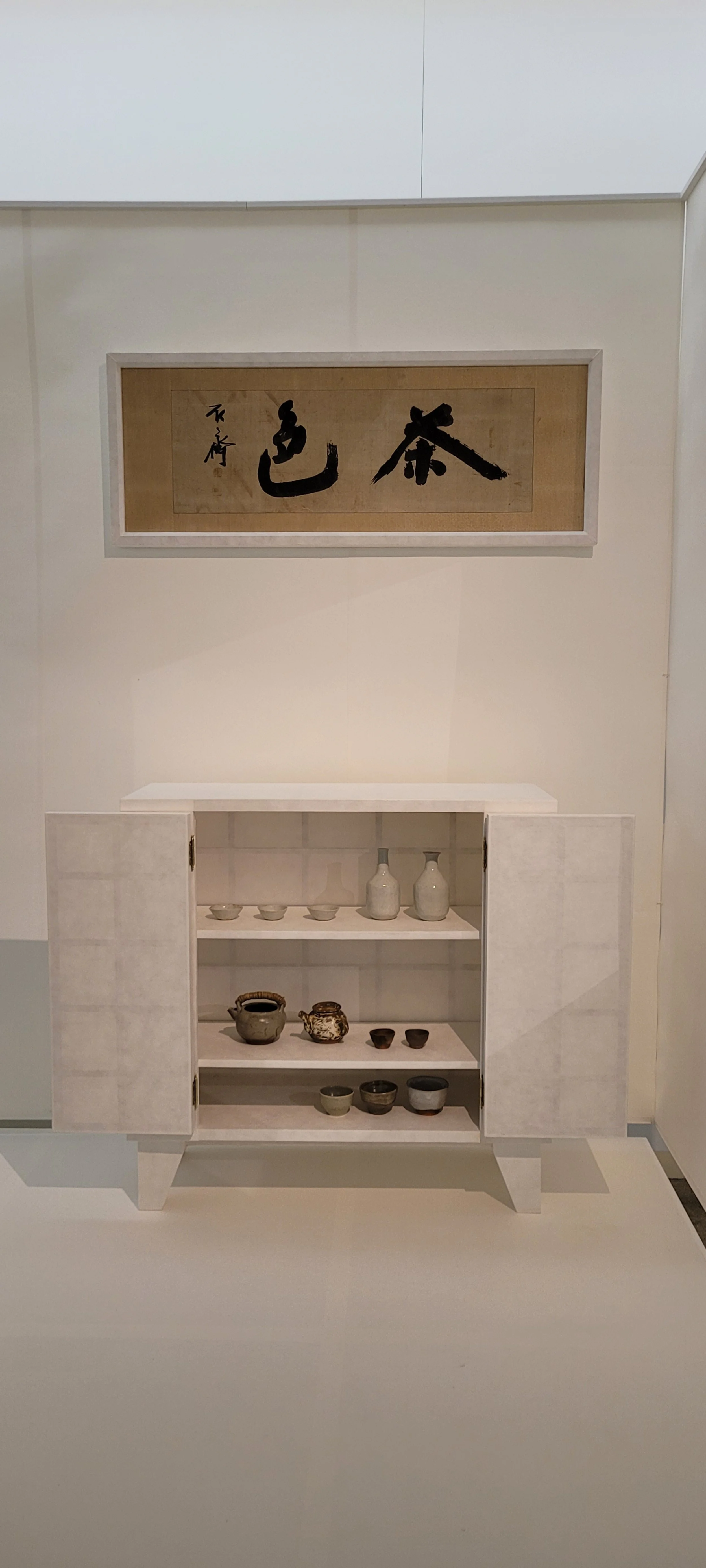 As I entered the foundation, located in the Bukcheon Hanok Village in Seoul, I was met with the works of Jiemin Park, the receiver of the eleventh Young Craftsperson of the Year award. As introduced, the artists creations shed their original form and transform into ashes contained within solid glass panels, evoking the imagery of a flowing in painting. Through her collaboration with YÉOL, Jiemin Park showcased for the first time handcrafted objects designed for everyday use, the vessels bringing to mind the traditional form of moon jars.